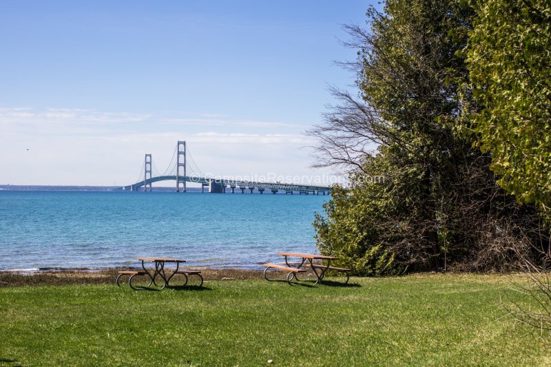 Straits State Park is home to 181 acres of recreation with views of the Mackinac Bridge and Straits of Mackinac Also, as a Michigan State Park, a Michigan recreation passport is required for entry.